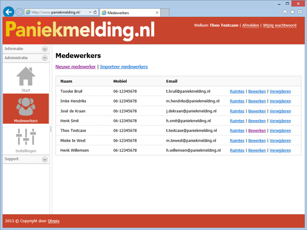 U importeert uw medewerkers vanuit bijvoorbeeld de Active Directory, zodat alle medewerkers inclusief hun mobiele telefoonnummers en e-mailadressen binnen paniekmelding.nl bekend zijn.